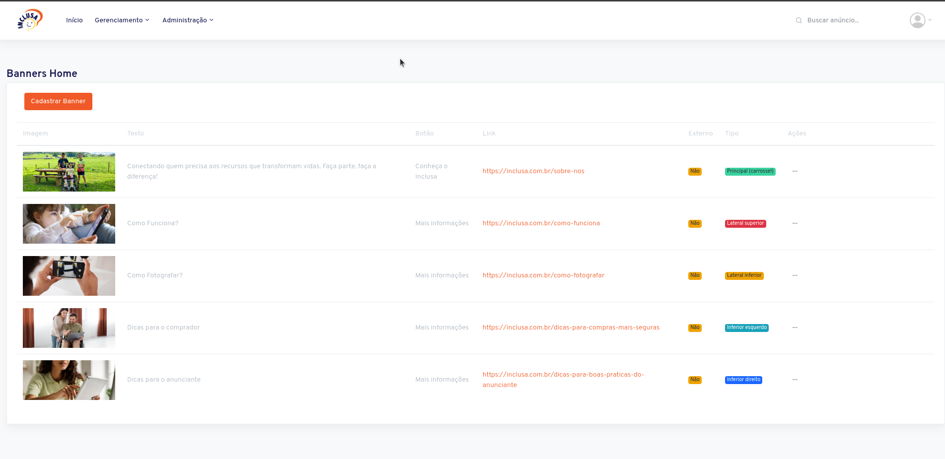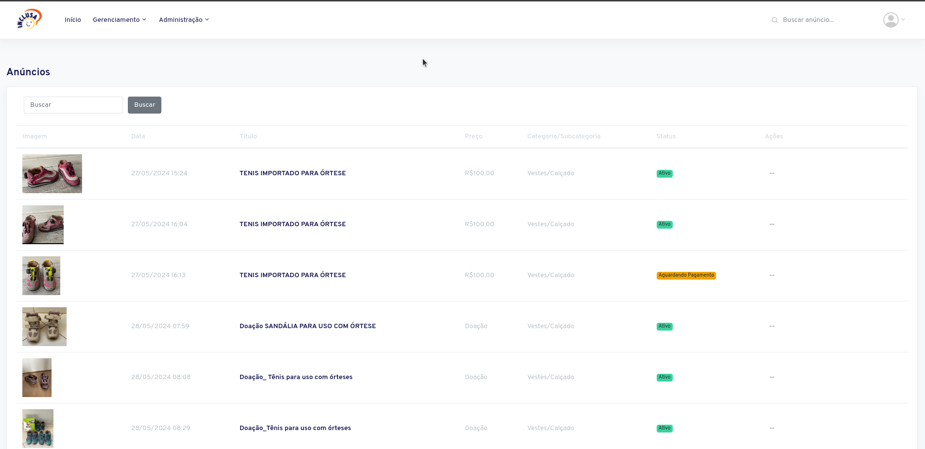 Recurso de moderação de anúncios, permitindo que o administrador do sistema aprove ou rejeite os anúncios